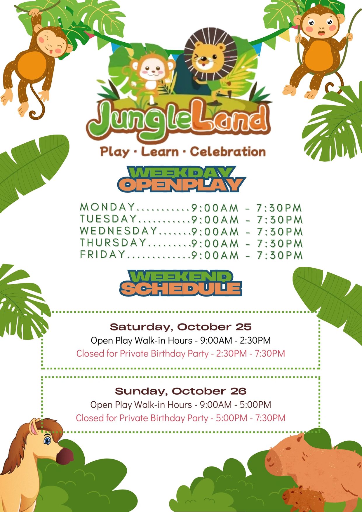 Jungle Land's owner is also a proud mom of two children. Therefore, Jungle Land pays close attention to every detail, such as the soft floor, corner guard protector, daily cleaning/disinfection, and weekly deep cleaning. We work hard to ensure children can play happily in a safe and clean environment!